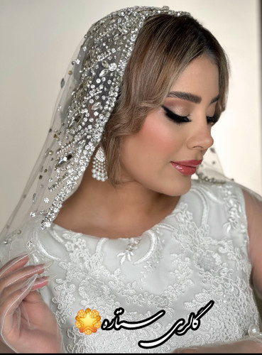 تور عروس مدل عربی با دیزاین کریستال و پولک
