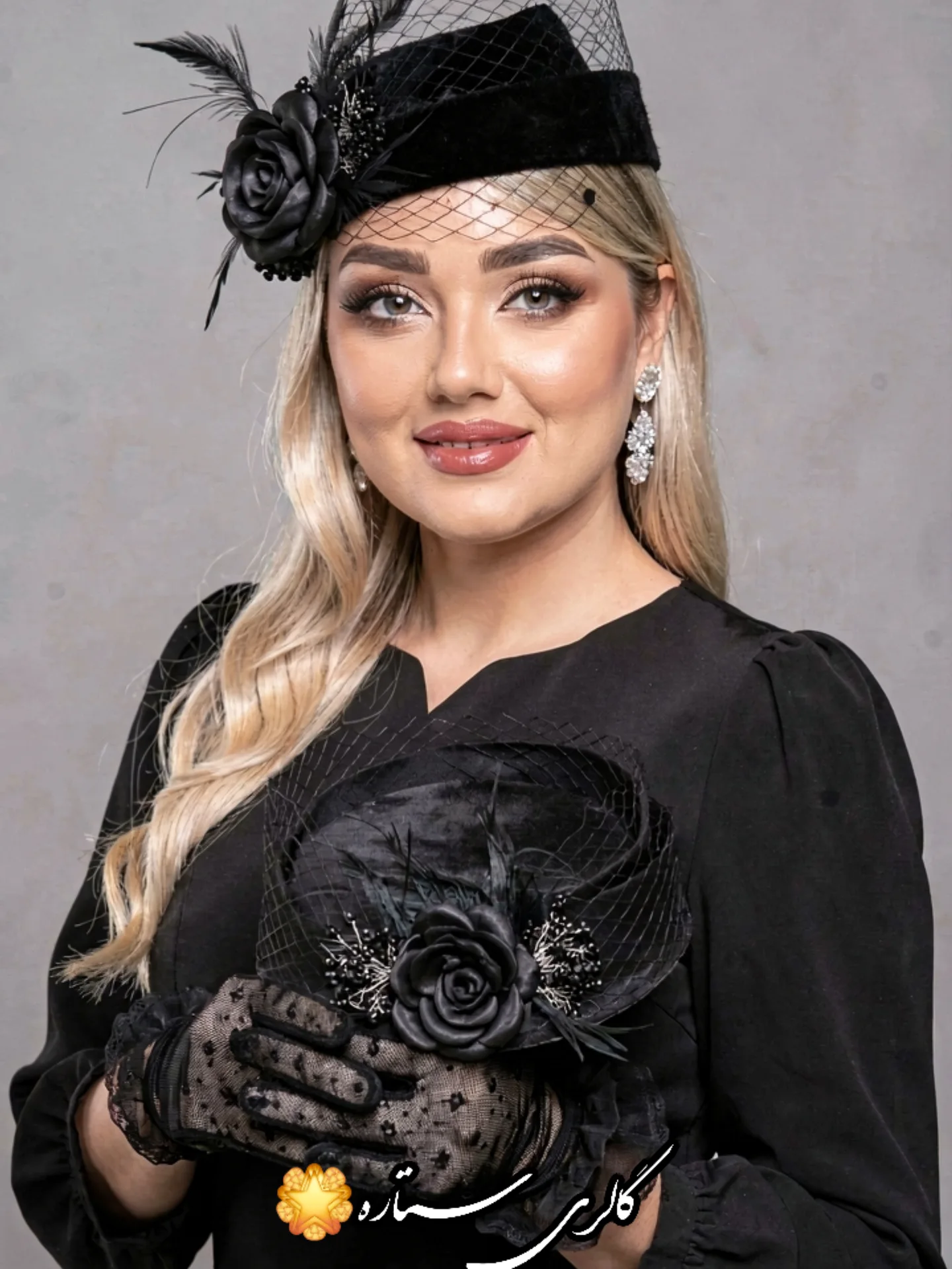 کلاه پیلباکی مدل گل رز و غنچه با دیزاین پر و تور_مشکی