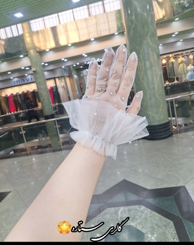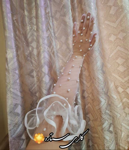 دستکش عروس مدل تور خالدار چین دوزی شده