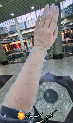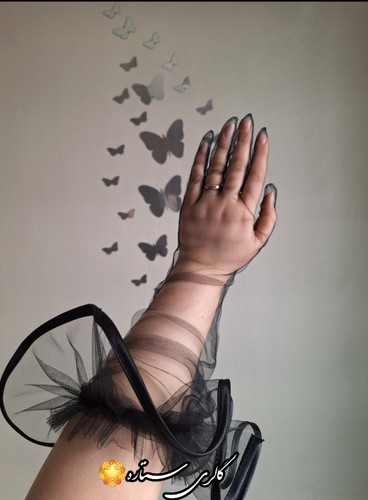 دستکش توری مدل پاپیون با دیزاین مروازید پانچ به صورت پخش