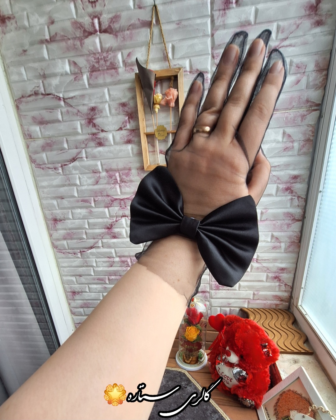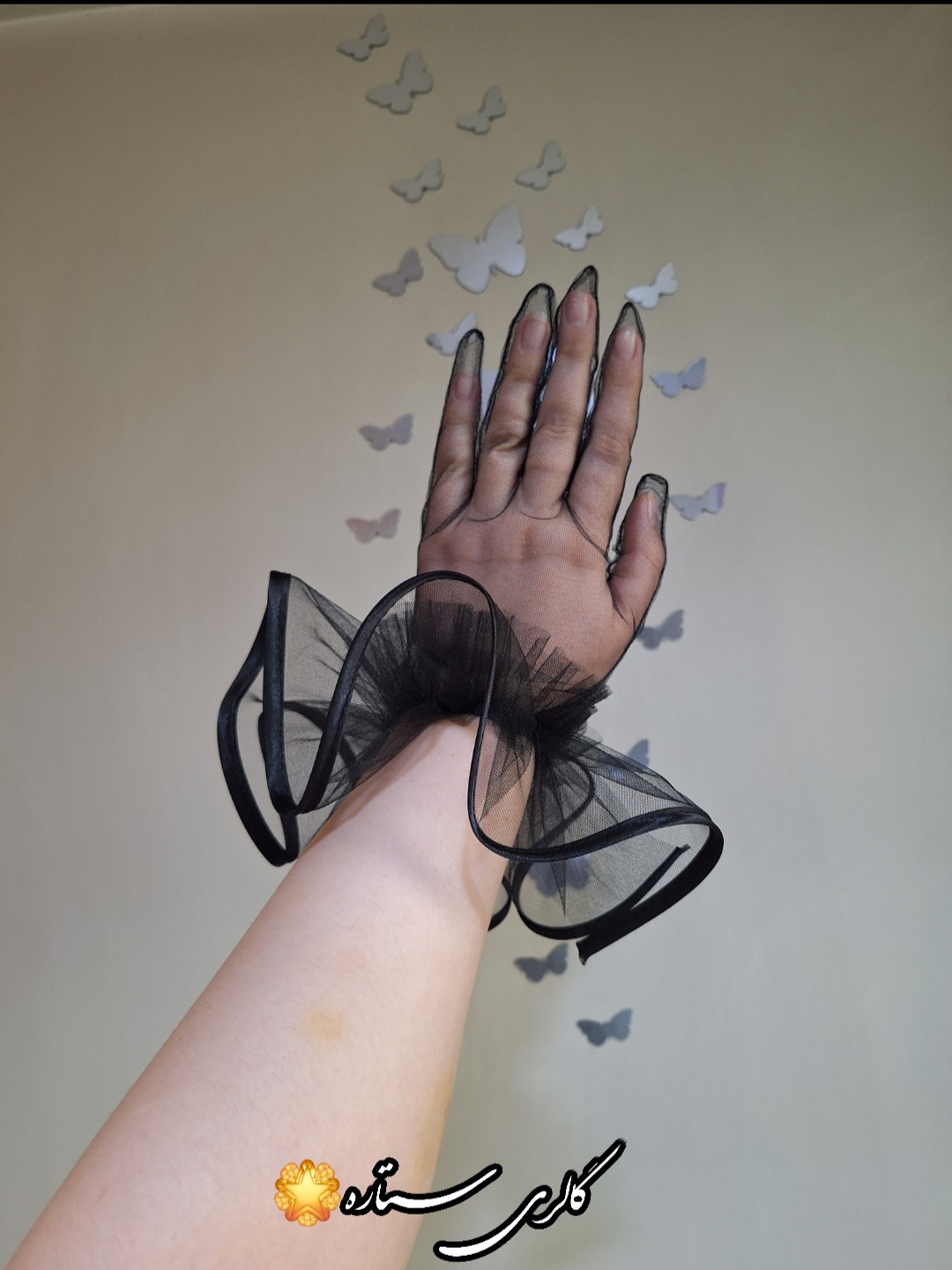 دستکش توری مدل پاپیون ساتن