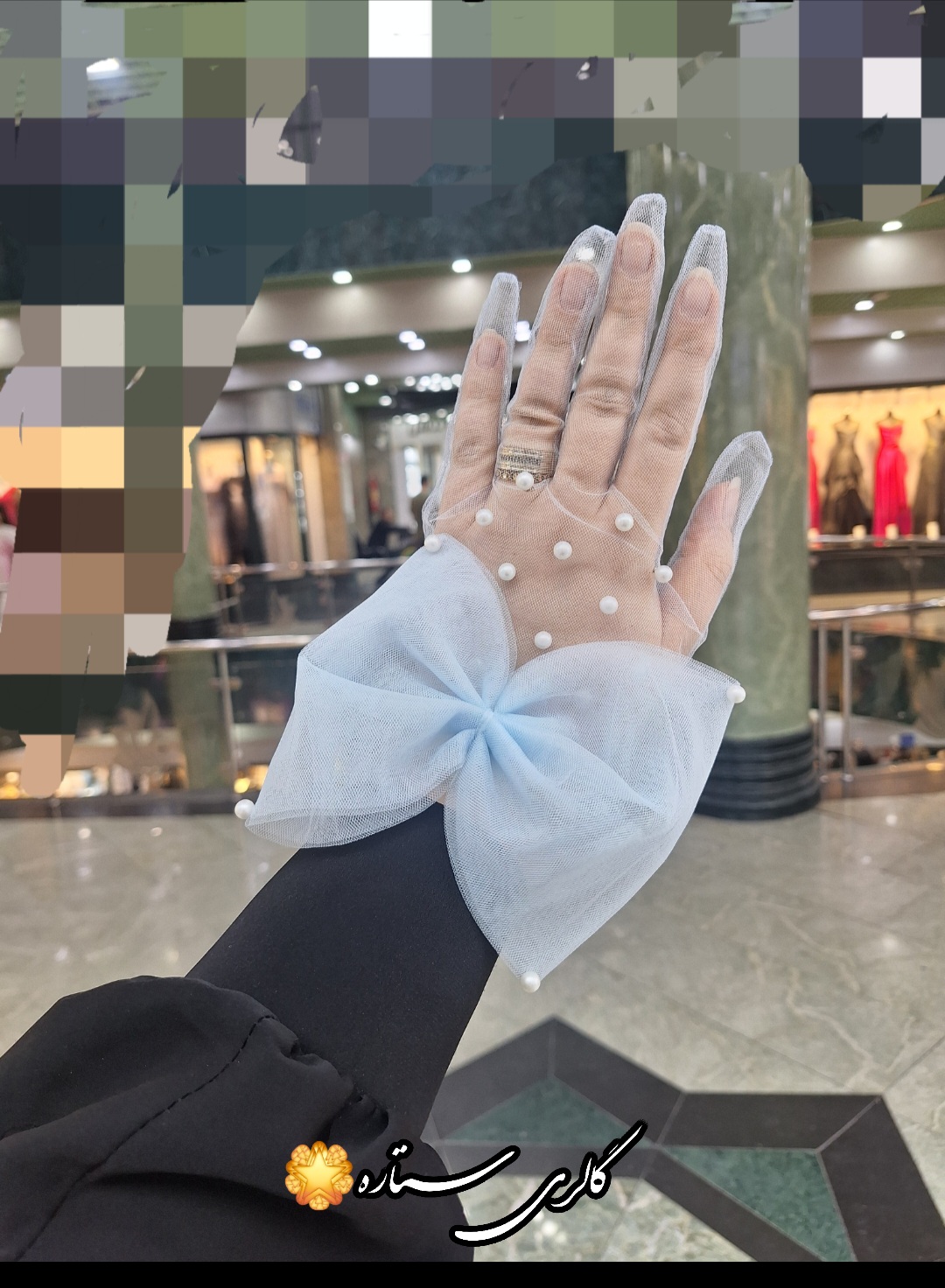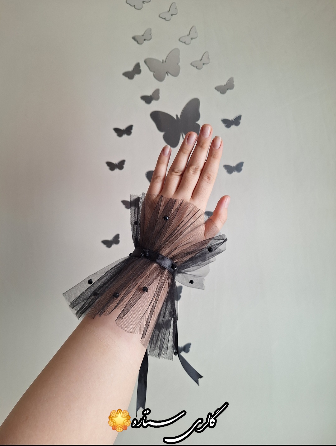 دستکش توری مدل پاپیون با دیزاین مروازید پانچ به صورت پخش