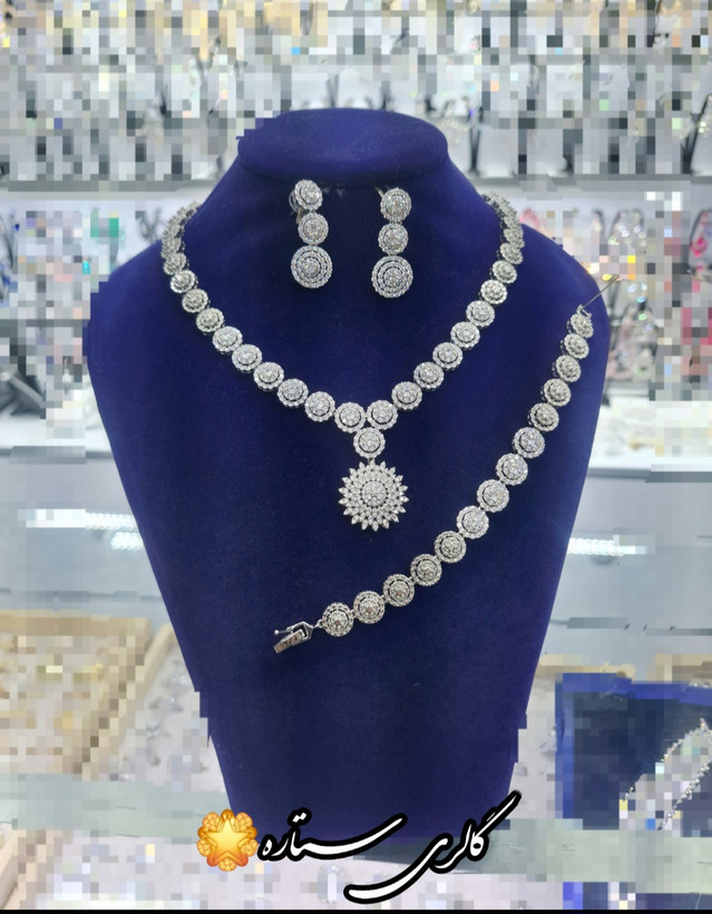 سروس وارداتی طرح جواهر با سنگ اتریشی مدل خورشیدی_برنج ابکاری طلا