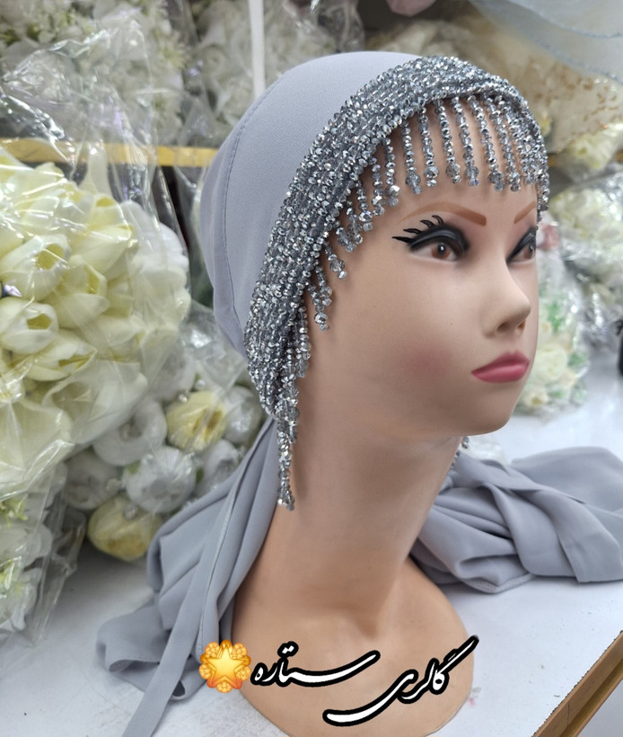 هدشال مجلسی جواهردوزی مدل ریزشی کریستال