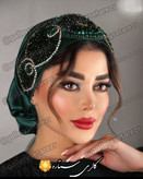 توربان مجلسی سبز یشمی مدل زمرد – جواهر دوزی شده با سنگ اتریشی و کریستال تراشدار