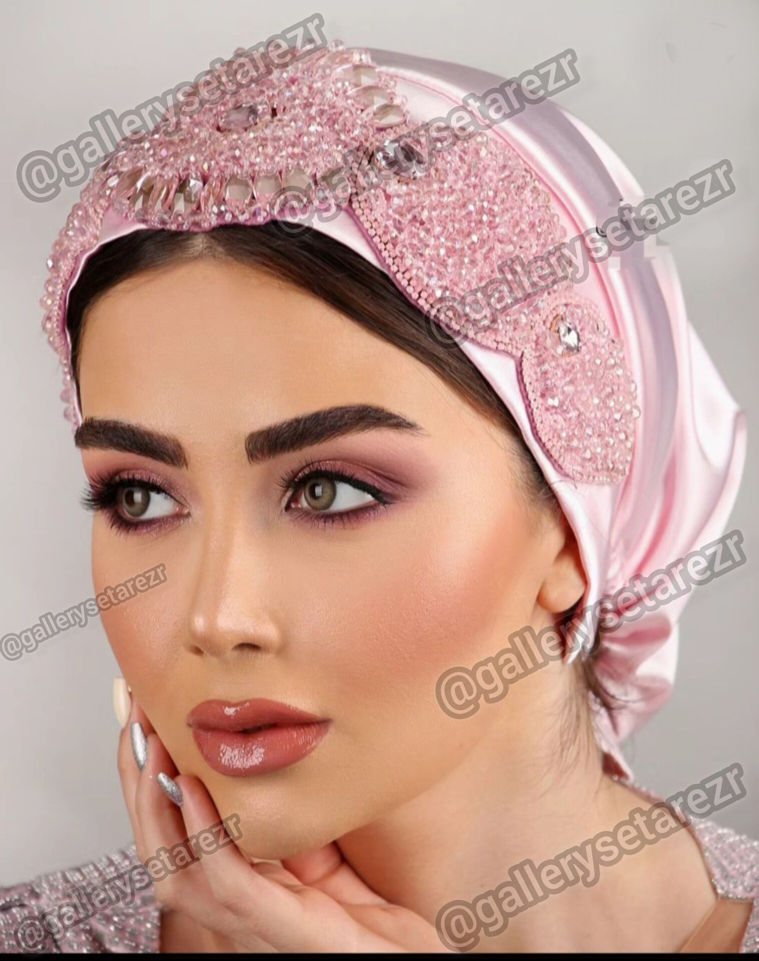 ✨ جواهر دوزی فوقمتراکم: طراحی دستی با استفاده از سنگهای اتریشی درخشان در قسمت جلوی توربان.