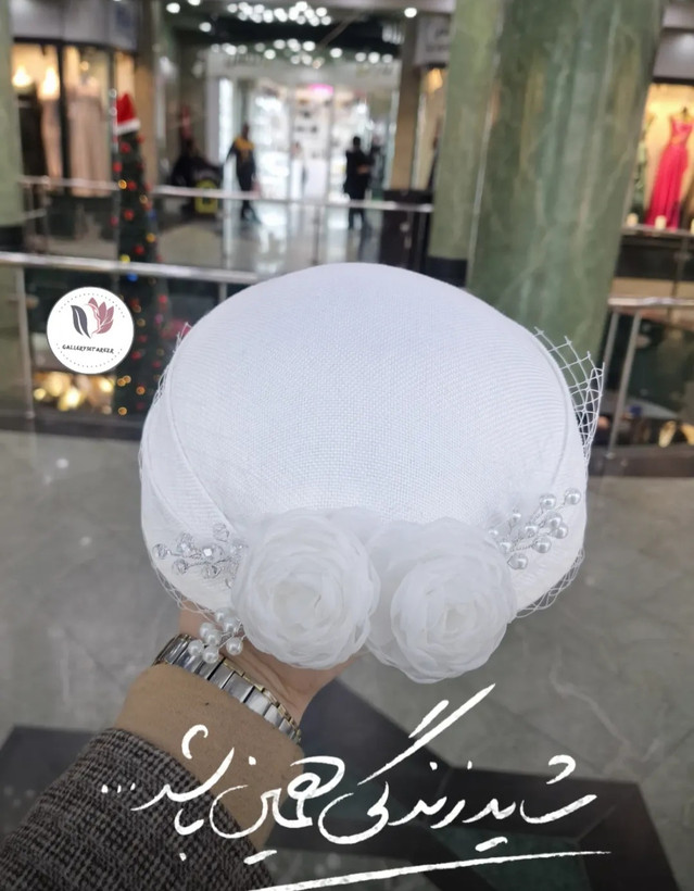 کلاه مجلسی عروس برژه وارداتی مدل النا دیزاین فاخر گل پیونی برجسته