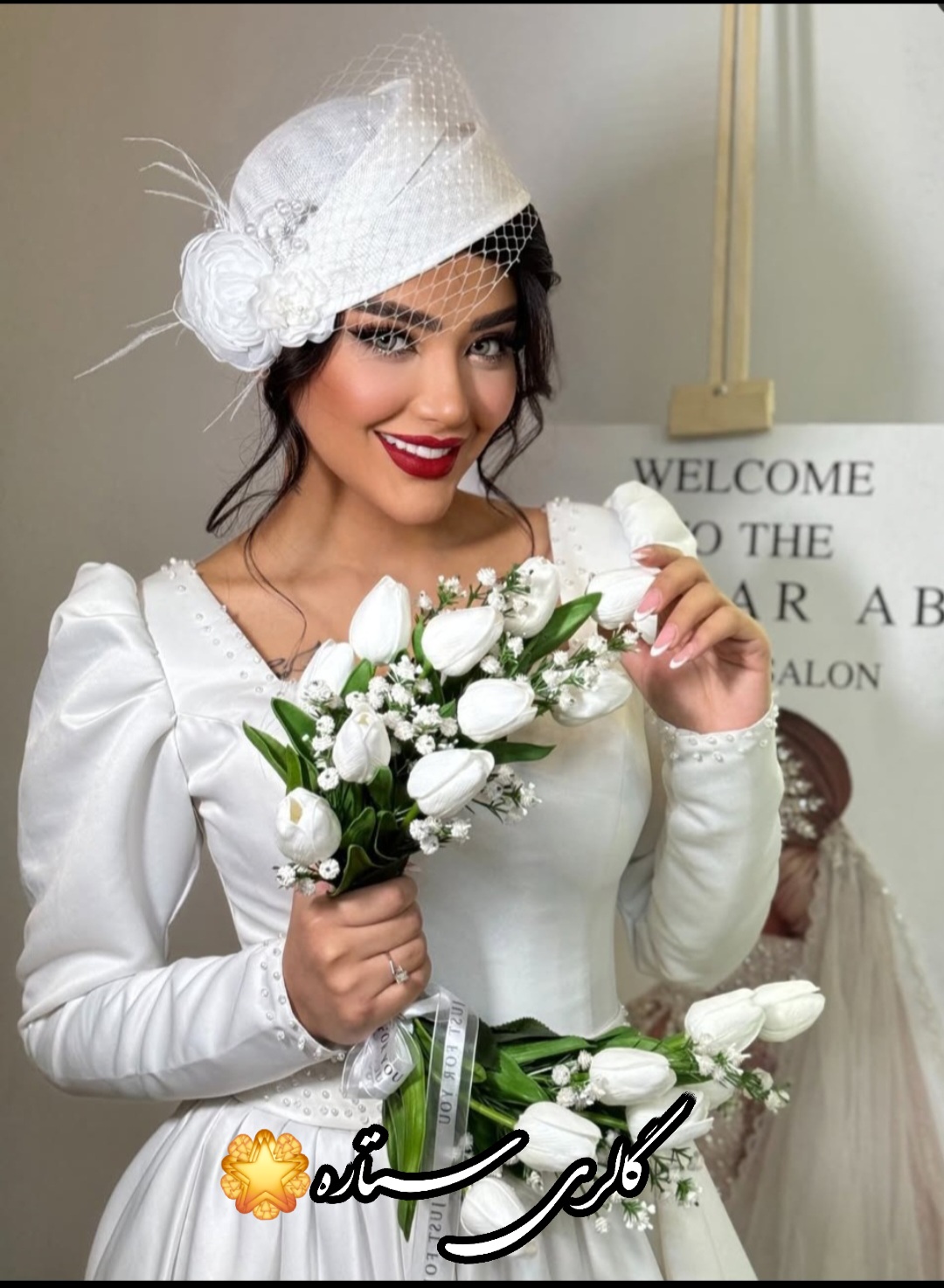 کلاه مجلسی عروس برژه وارداتی مدل النا دیزاین فاخر گل پیونی برجسته