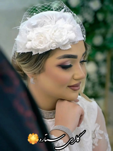 کلاه مجلسی عروس برژه وارداتی مدل النا دیزاین فاخر گل پیونی برجسته