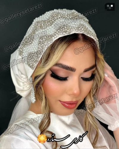 توربان مجلسی عروس با دیزاین مروارید و سنگ چک اصل