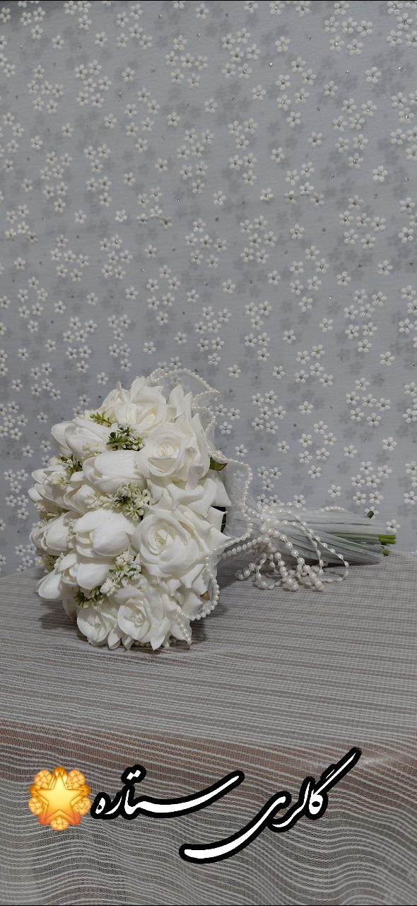 دسته گل عروس اروپایی شیپوری لمسی همراه با مروارید دسته ساز