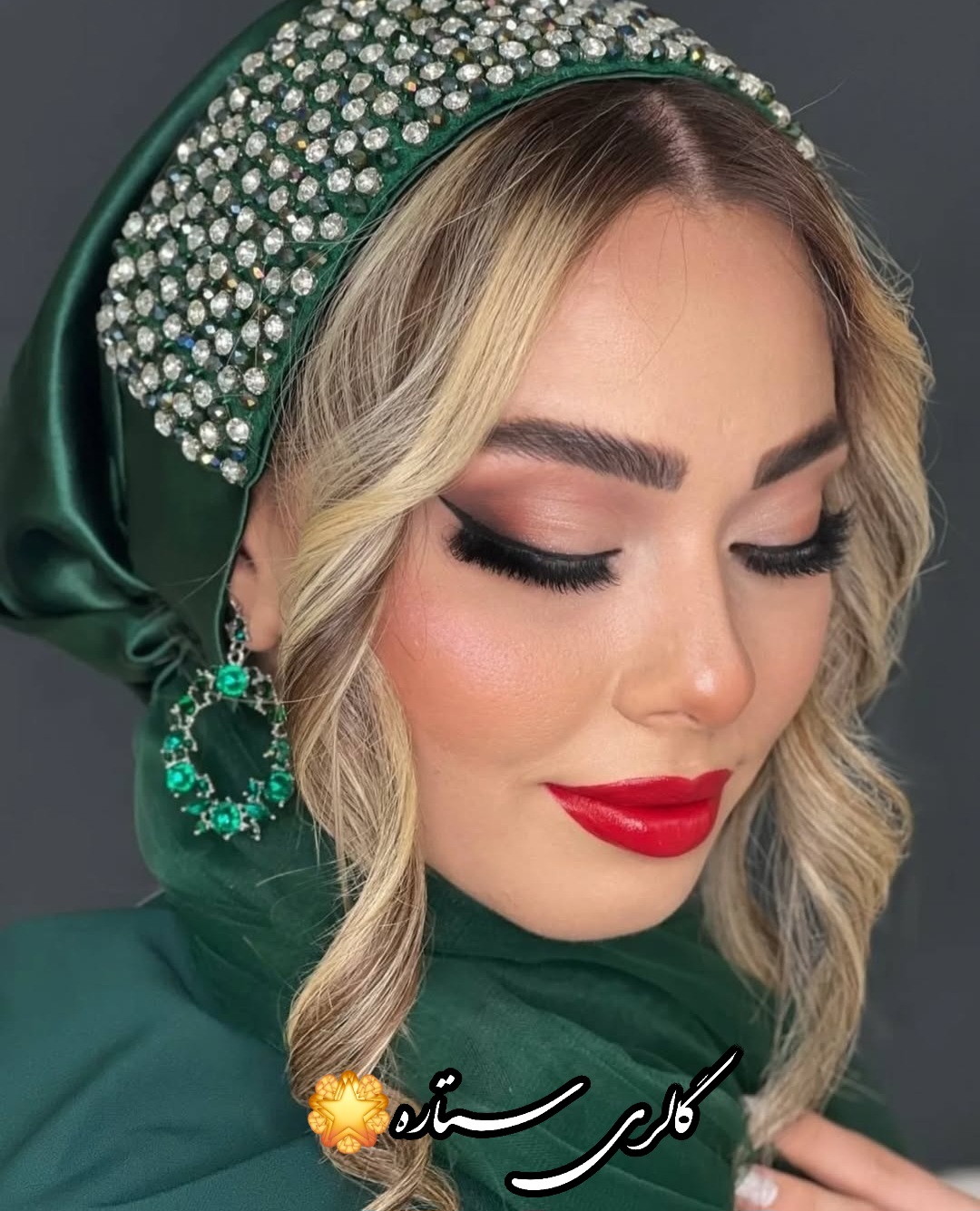 توربان مجلسی سبز یشمی مدل زمرد – جواهر دوزی شده با سنگ اتریشی و کریستال تراشدار