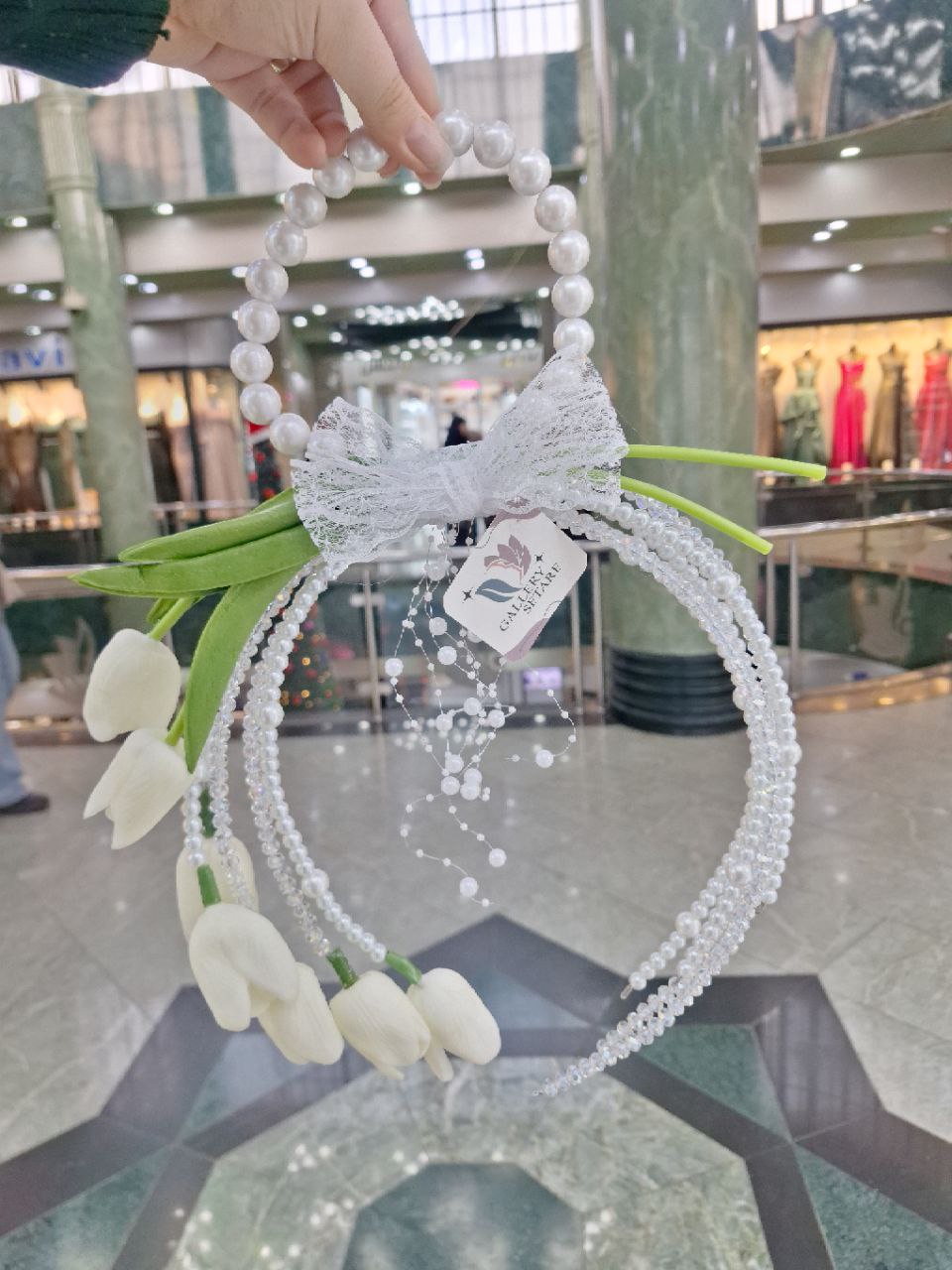 ریسه موی مدل یونانی با دیزاین سنگ مارکیزو کریستال و مروارید اصل