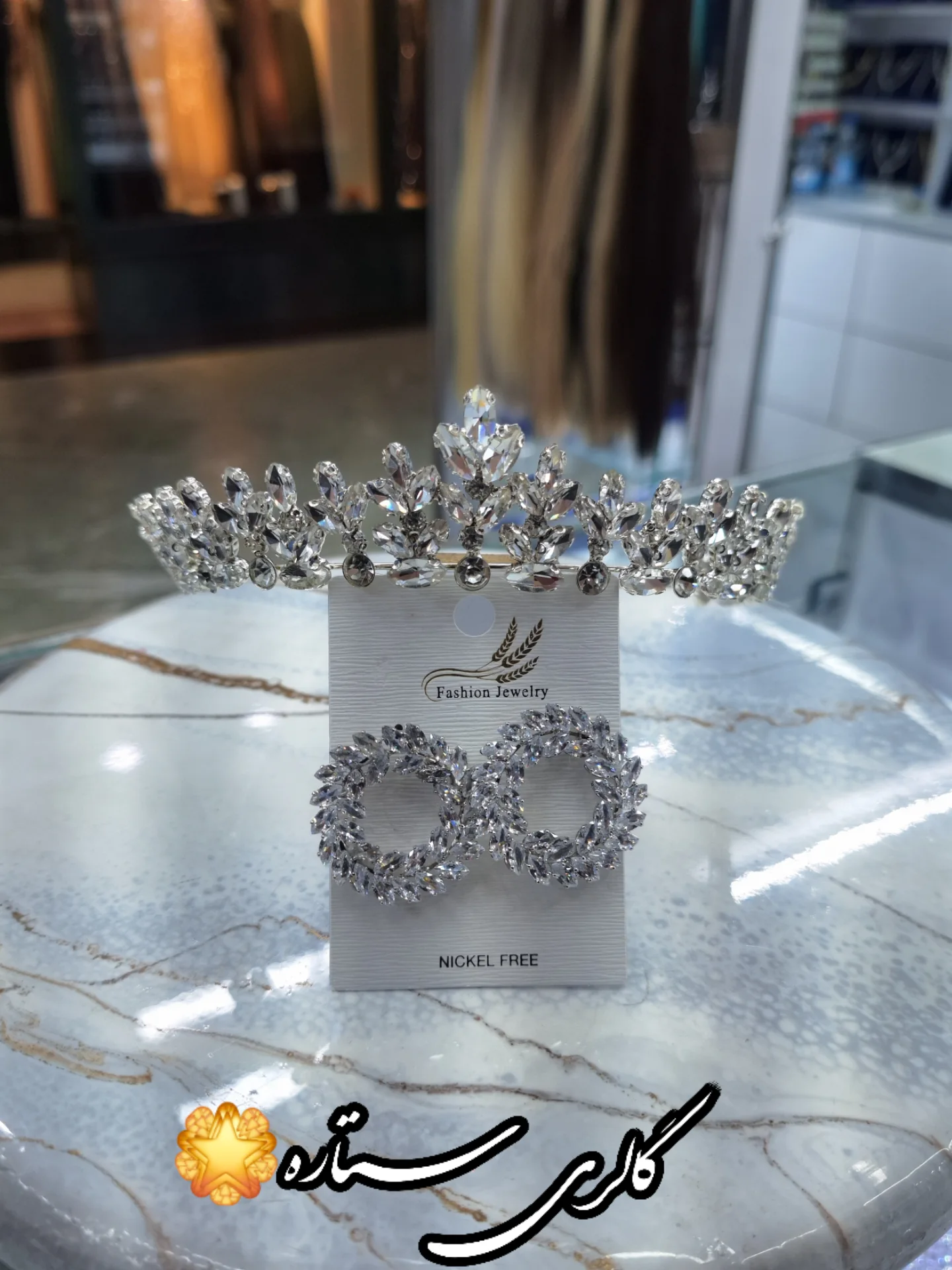 نیمست جواهرنشان مجلسی وارداتی – جنس نیکل فری با آبکاری رادیوم (نقره) و سنگهای درخشان