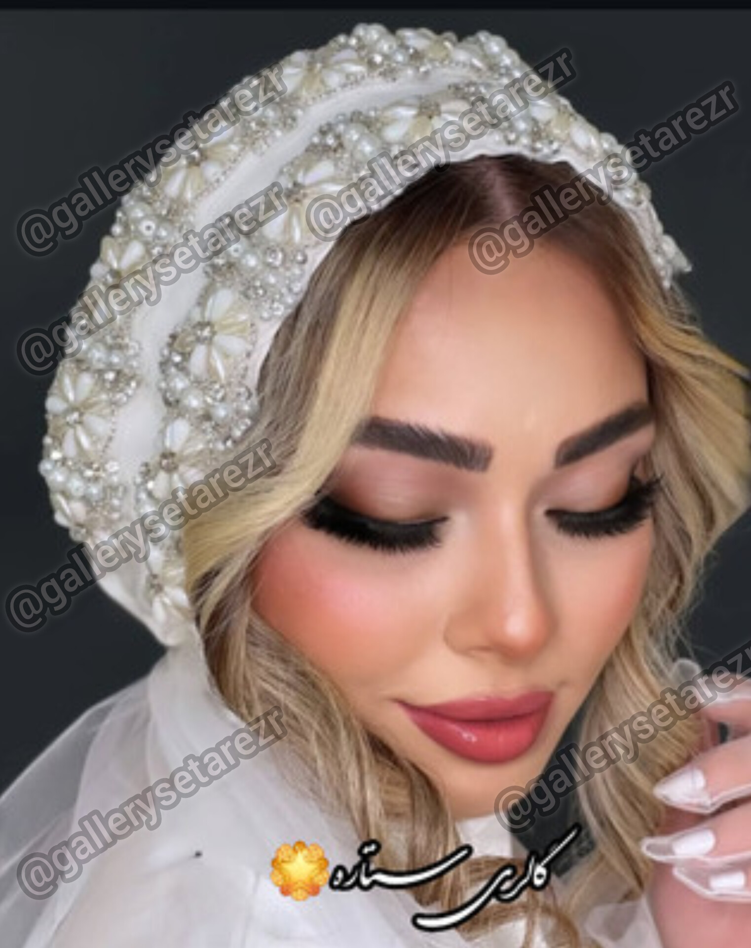 توربان مجلسی عروس با دیزاین مروارید و سنگ چک اصل
